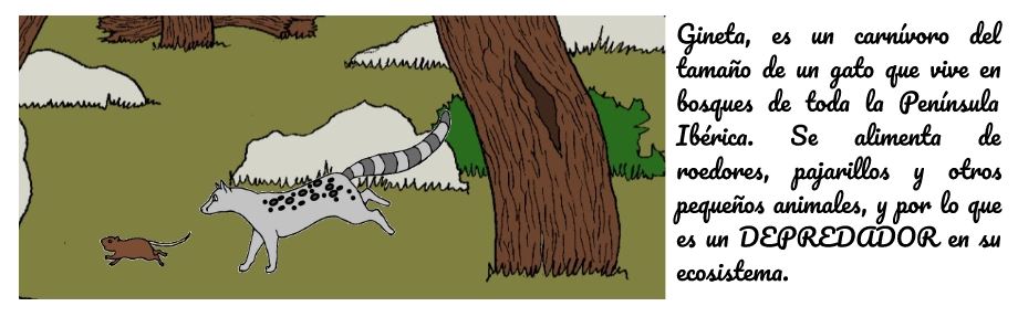 No somos alimañas,de GCT: Este cuento, desarrollado por el Grupo de Carnívoros Terrestres, cuenta la historia de un grupo de pequeños carnívoros ibéricos. A través de la historia cuenta cuáles son sus amenazas y los retos de su conservación. A medida que la historia avanza, se va explicando quiénes son los carnívoros protagonistas, cuáles son sus características y sus amenazas.