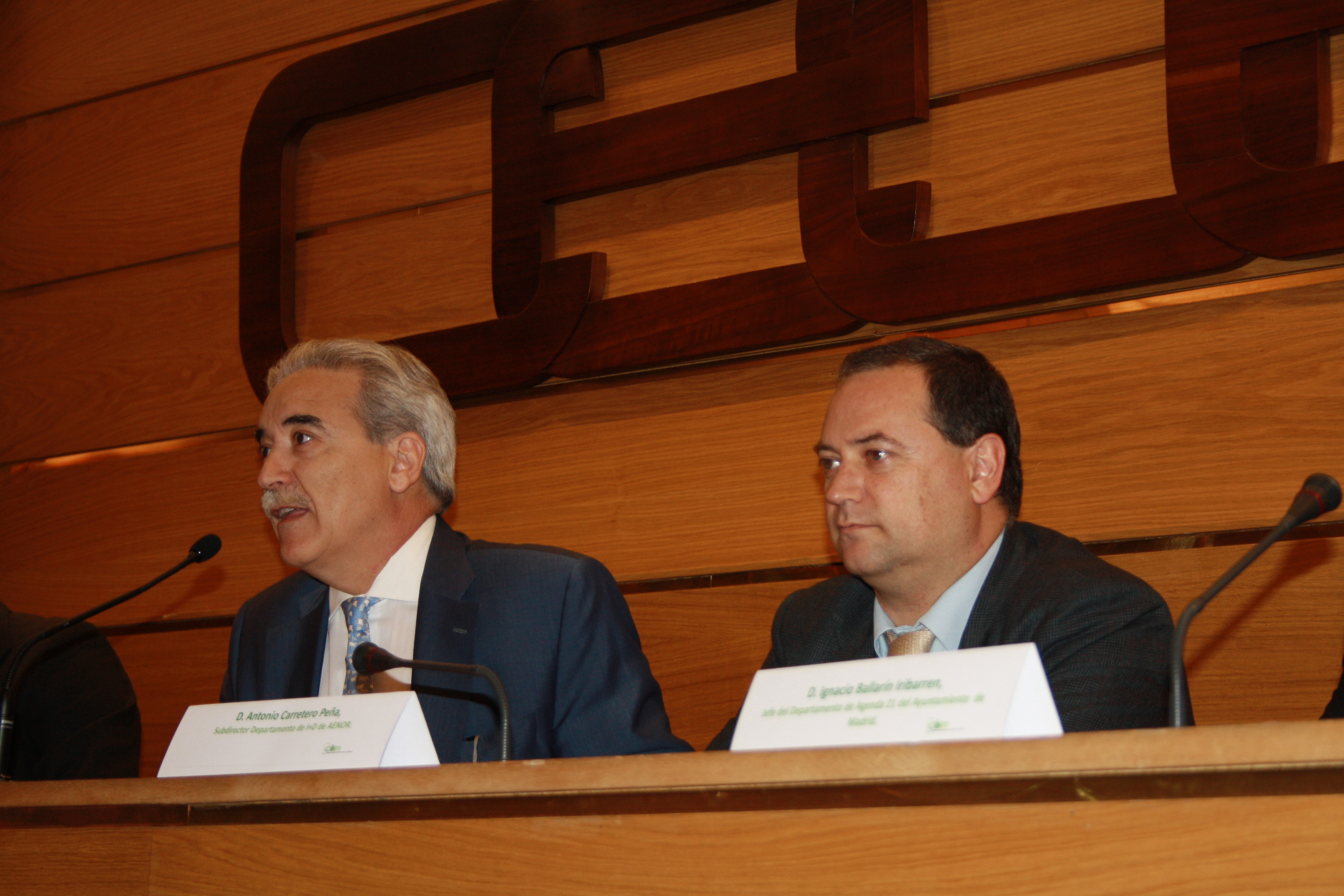 Carlos Encabo, Presidente del ISM y Antonio Carretero Peña , Subdirector Departamento de I+D de AENOR durante las Jornadas.
