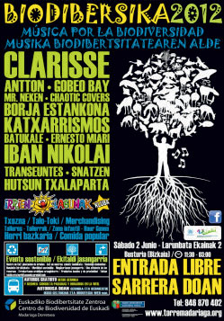 * 2 de junio de 2012 Biodibersika. Festival que tiene como objetivo promover la concienciación de la importancia de la Biodiversidad utilizando la Música como forma de expresión.Se incluyen diversos géneros y procedencias musicales para tratar de albergar la mayor diversidad posible como muestra de la importancia de las diferentes particularidades, matices o interpretaciones existentes dentro de la música, al igual que ocurre con los individuos, especies y ecosistemas que conforman la biodiversidad. Comenzará a las 11:00 de la mañana con una plantación de árboles y finalizará a las 03:00 trás contar con una amplia variedad de estilos musicales.