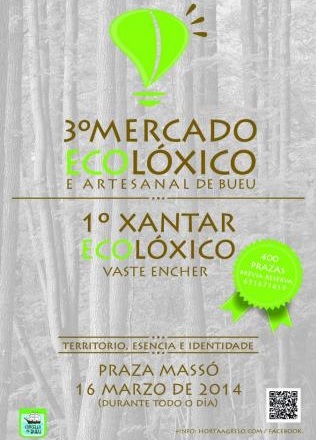 * Domingo 16: Mercado Ecológico y Artesanal de Bueu (Pontevedra). La principal novedad de esta edición es la organización del primer Xantar ecolóxico Vaste Encher, una apuesta por la gastronomía ecológica en la que los asistentes podrán degustar un menú elaborado por Casa Quintela y compuesto por una hamburguesa de pulpo, tetilla y canónigos ecológicos; calabaza en tempura con jamón serrano y un rollito de nabiza, crema de patata y chorizo. El postre será una ración de tarta de nueces y mermelada de arándanos y para beber los asistentes podrán elegir entre vino o cerveza artesanal. También se celebrarán talleres.