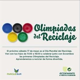 * Actividades Día del Reciclaje de Ecoembes: Todas las actividades se llevarán a cabo en Madrid y son gratuitas. Están dirigidas a todos aquellos que tengan ganas de divertirse y pasar un buen rato mientras cuidan del medio ambiente y aprenden la importancia del reciclaje. Destacamos las Olimpiadas del reciclaje.