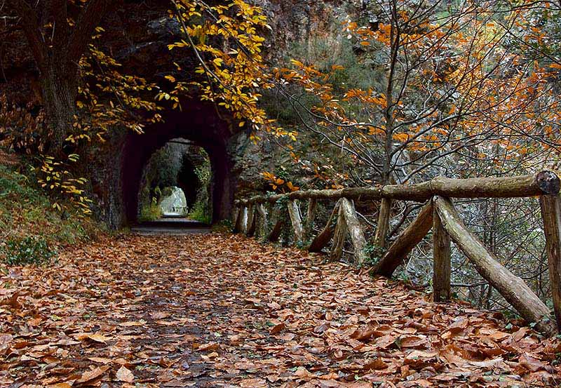* Senda del oso (Asturias): ruta idónea para amantes del senderismo y cicloturistas. Su gran riqueza natural y etnográfica avanza a través de túneles y puentes que dan una pincelada de aventura a la marcha. El tramo de 22 kilómetros que va desde Tuñón hasta Entrago, transcurre siempre por terreno asfaltado, con valla protectora, frecuentes fuentes para el avituallamiento y carteles informativos acerca de la flora y la fauna, los monumentos de la zona, rutas alternativas o consejos.