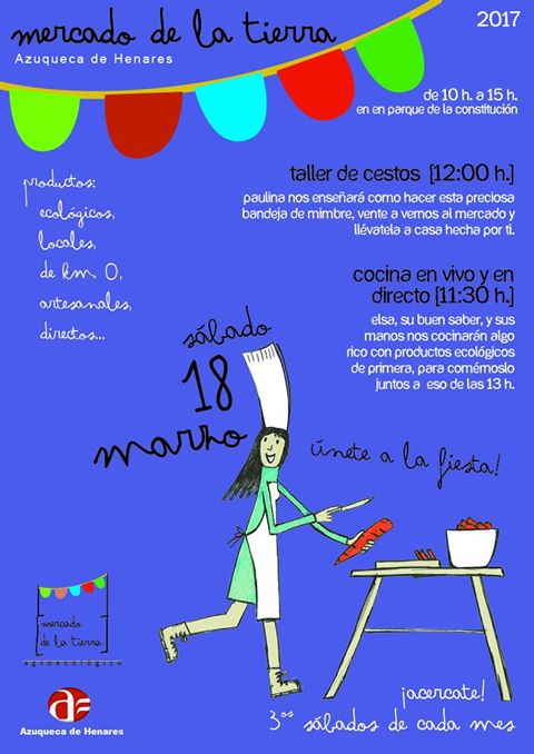* Sábado 18: Mercado de la Tierra en Azuqueca de Henares: La localidad de Azuqueca de Henares (Guadalajara) celebra este sábado su Mercado de la tierra, donde además de ricos productos alcarreños podremos asitir a un taller de cestería y a una sesión de cocina en directo con degustación.