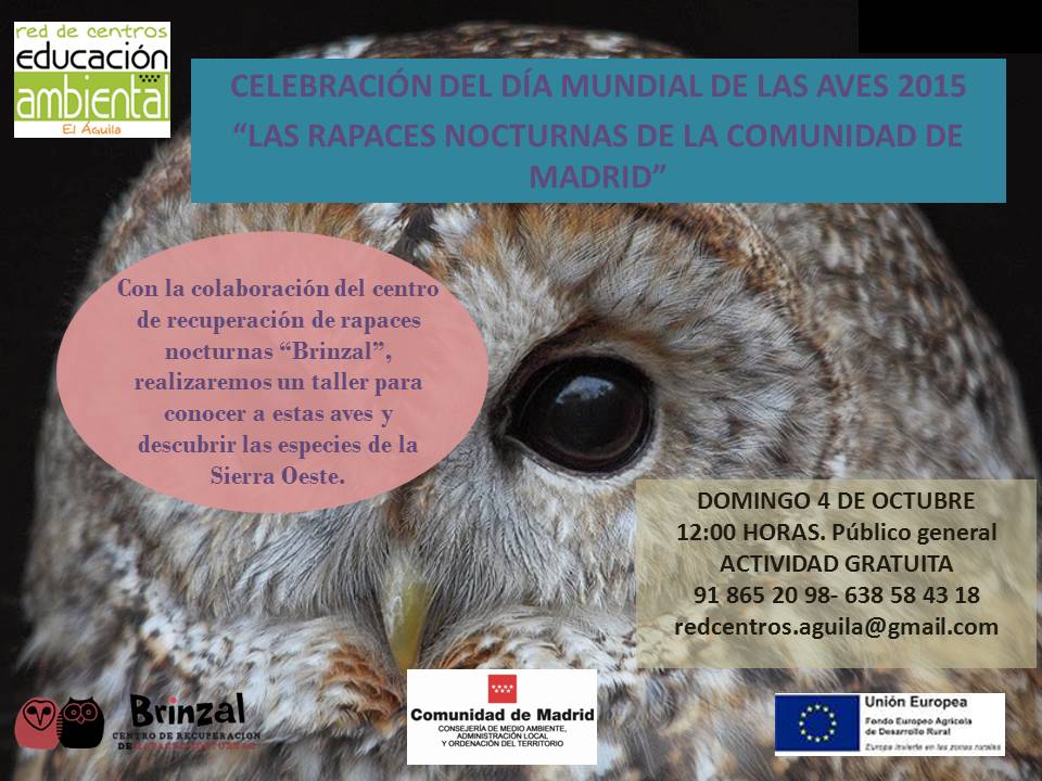 * Domingo 4: Rapaces nocturnas de la Comunidad de Madrid. Con la colaboración de Brinzal el CEA El Águila de Chapinería organiza esta actividad para conocer las rapaces de la Comunidad de Madrid.