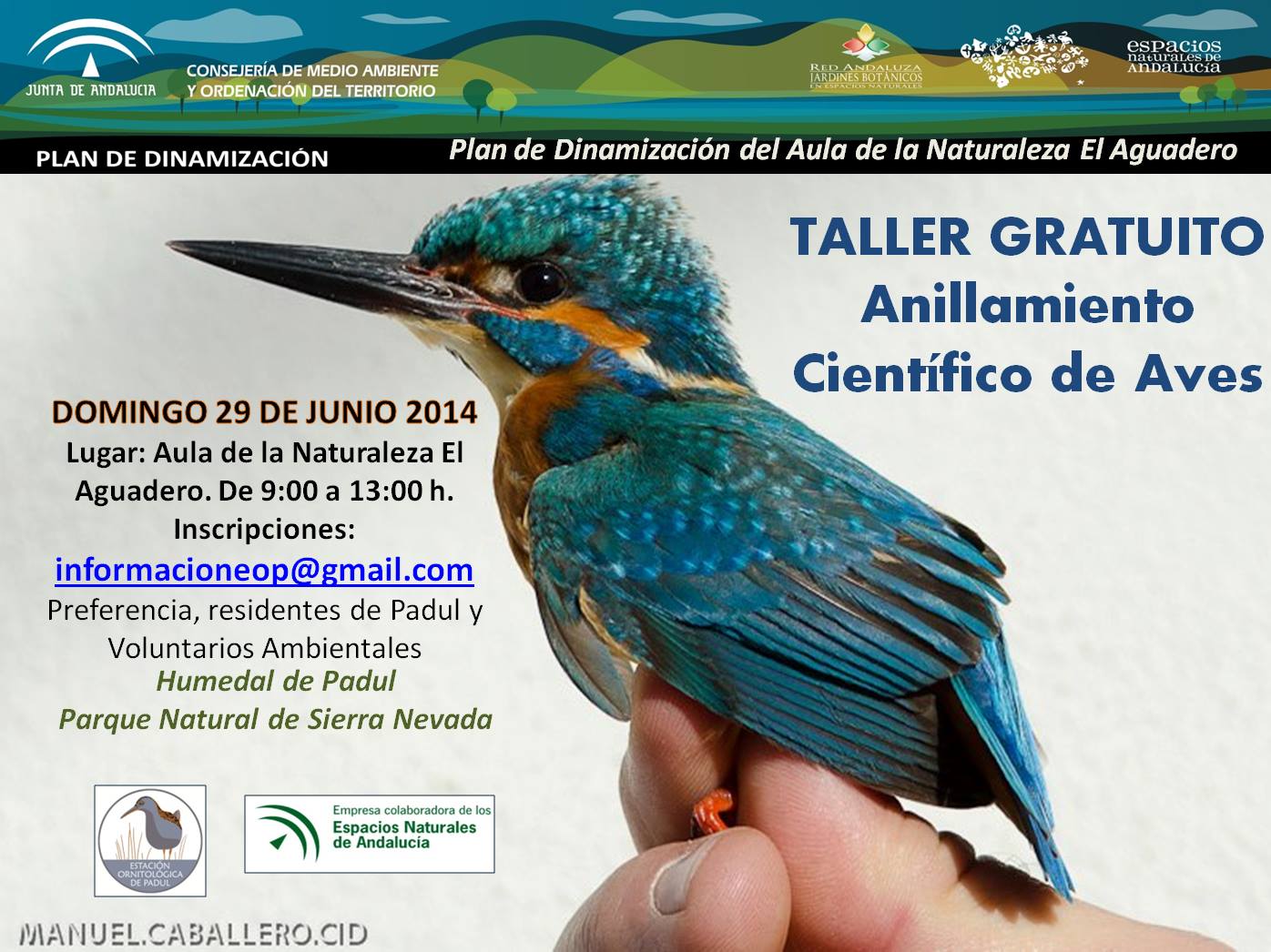 * Domingo 29: El Aula de la Naturaleza «El Aguadero» organiza una jornada gratuita de Anillamiento científico de aves. Jornada enmarcada en el plan de dinamización del aula, a la que invitamos especialmente a la población de Padul. Para reservar enviar correo a informacioneop@gmail.com.