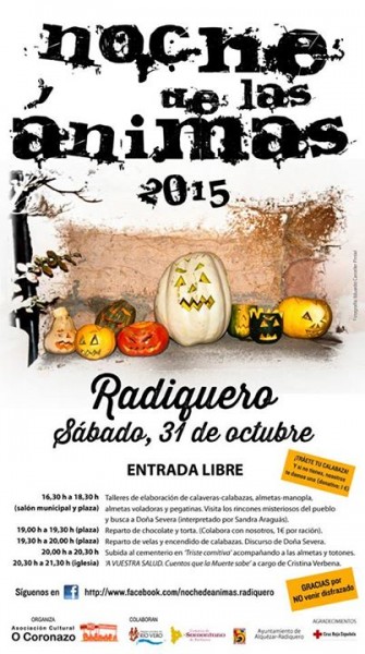 * Sábado 31: Noche de las ánimas en Radiquero (Huesca): El próximo sábado 31 de octubre volveremos a celebrar esta fiestas que pretende poner en valor una celebración ancestral, muy anterior al archiconocido ‘Halloween. Talleres de calabazas, velas y cuentacuentos.