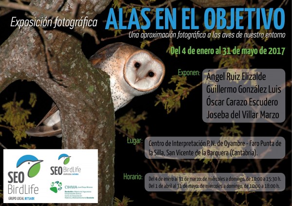* Exposición Alas en el objetivo, en San Vicente de la Barquera, Cantabria. Podemos disfrutar de laorganizada por el grupo local de SEO Birdlife y donde podremos disfrutar de 30 fotografías de aves en su entorno natural.
