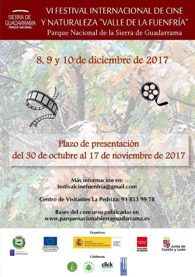* VI Festival Internacional de Cine y Naturaleza “Valle de La Fuenfría” Un año más, el Parque Nacional de la Sierra de Guadarrama celebra el Festival Internacional de Cine y Naturaleza «Valle de la Fuenfría», con el objetivo de fomentar la cultura cinematográfica medioambiental a través del cortometraje, descubriendo aquellas propuestas innovadoras en este campo y apreciándolo como medio esencial de trasmisión de los valores medioambientales. El Festival se celebrará entre el 8 y el 10 de Diciembre. A lo largo de estos tres días, podremos ser partícipes de muchas actividades: sesión de cine participativa para decidir el premio de público, actividades destinadas a los pequeños de la casa, degustación de productos de la Sierra de Guadarrama, coloquios y un sinfín de actos donde la cultura y el medio ambiente viajan de la mano para hacer de este Festival uno de los eventos más importantes del Parque Nacional y por ello, visita obligada para todos aquellos amantes de la naturaleza y el séptimo arte.