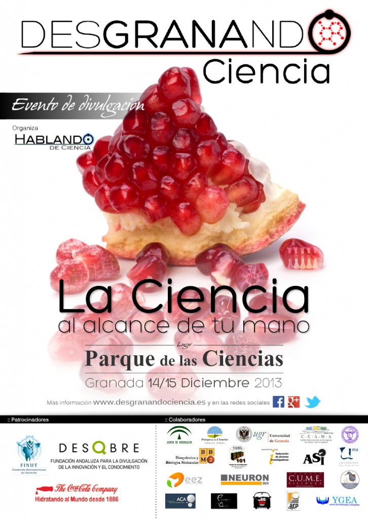 * Desgranando Ciencia: Evento de divulgación científica donde el público podrá ver, oír, experimentar, hablar, disfrutar, y visitar la ciencia. Sólo por las ganas que han puesto sus organizadores merece la pena hacerles una visita si estáis por la zona, y el programa promete. Sábado y Domingo en el Parque de las Ciencias de Granada.