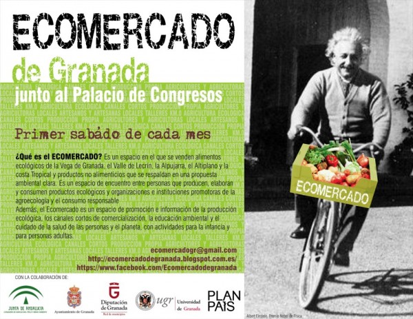 * Sábado 5. Ecomercado de Granada.Traerá, además, de los alimentos ecológicos de  pequeños agricultores y agricultoras, varias actividades: a) un punto de información sobre la variedad tradicional de olivo Lucio, que está en riesgo de desaparecer, y podemos apadrinar uno de estos viejos olivos. b) Impresentaibol y su arte musical. c) Caroubé y los productos de algarroba. d) Reciclaje lúdico y creativo con planeta tapón y e) una exposición de cerámica orellana del altiplano de Granada. Al lado de Palacio de Congresos, ribera del Genil.