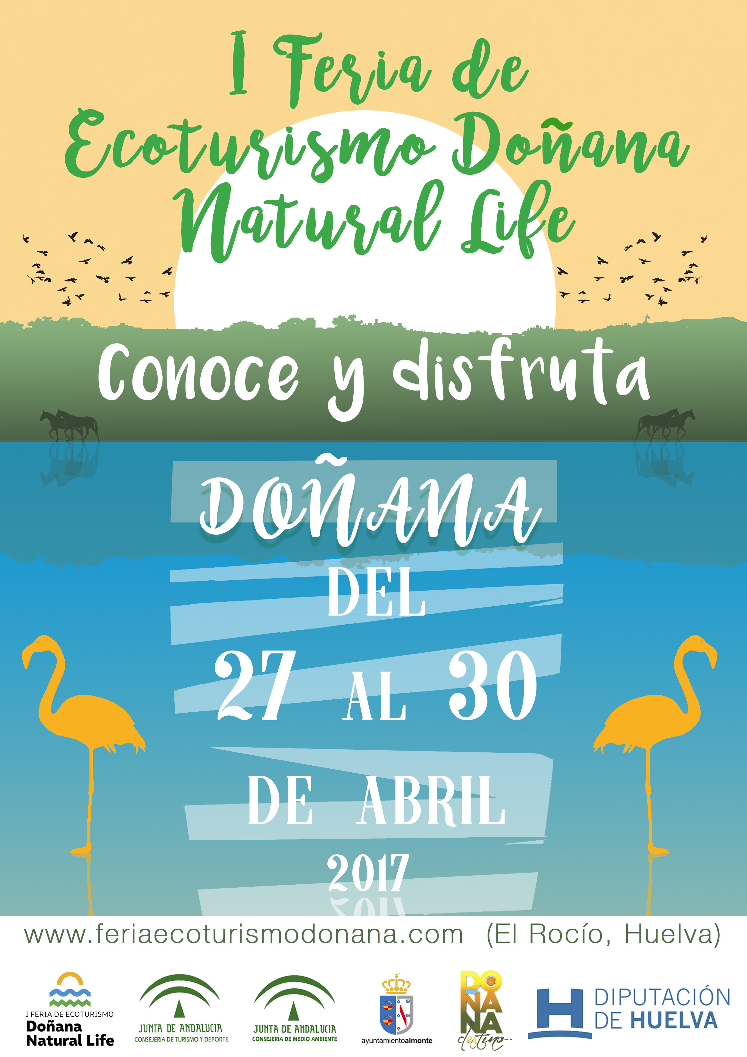 * I Feria de Ecoturismo Doñana Natural Life, se celebrará en El Rocío desde el 27 al 30 de abril y que persigue potenciar el turismo de naturaleza. Durante la muestra los asistentes podrán visitar distintas carpas, instaladas en el Paseo Marismeño. Tres de ellas estará destinadas a la observación de aves y otras especies, mientras que en el resto se ubicarán stands de empresas relacionadas con el turismo de naturaleza, exposiciones de fotografías y se podrá realizar otras actividades como rutas guiadas, anillamiento de aves, observación astronómica, vuelo de drones…