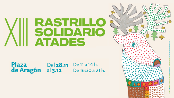 *Rastrillo Navideño de Atades (Zaragoza): Vuelve el rastrillo solidario de Atades a la plaza Aragón de Zaragoza, desde el martes 28 de noviembre. En él, podrás colaborar comprando productos como flores, plantas, conservas ecológicas, jabones artesanales, vajilla artesanal, botellas pintadas a mano y mucho más.