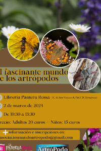 *Sábado 3. El fascinante mundo de los artrópodos. Librería la Pantera Rosa, Zaragoza. Taller para aprender más sobre el fascinante mundo de la entomología. Aprenderemos de la mano de la asociación mundo artrópodo, a identificar insectos y sobre su importancia en los ecosistemas