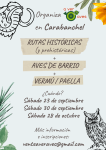 *Sábado 23 Aver Aves en Carabanchel. Nos proponen una nueva actividad que mezcla con gran armonía la observación de aves urbanas, la historia y el patrimonio cultural de Carabanchel (Madrid) y una invitación a tomar algo en bares y cafeterías de barrio.