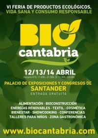 *BioCantabria: Este fin de semana tendrá lugar la VI Edición de BIOCANTABRIA. Entre los expositores podemos confirmar la presencia de más de 20 operadores agroalimentarios de la región que cuentan con el Certificado Ecológico para sus explotaciones y producciones. Además, nos visitarán operadores agroalimentarios de otras Comunidades Autónomas, con marcas ecológicas de altísima calidad, representando a productos estrella del país como quesos o aceites. Mucha alimentación, sabor, olor, salud y calidad en una cesta de la compra, a precios de feria que harán las delicias de quienes acudan a esta cita donde además, habrá demostraciones culinarias en directo, talleres gastronómicos y nutricionales.