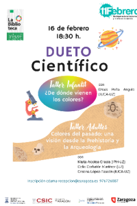 *Viernes 16: Taller «¿De dónde vienen los colores?» (Zaragoza): ¿Por qué el cielo es de color azul? ¿y el mar? ¿Por qué las hojas de los árboles a veces son de color verde y otras de color amarillo? ¿Por qué en las bodas las novias se visten de blanco? ¿Por qué el color negro no me trasmite alegría? ¿Existe un color que tenga todos los colores del mundo? ¿Por qué… ? En la actividad se dará una explicación científica a las preguntas planteadas. En esta, se realizará un viaje desde que los rayos salen del sol, pasan por la atmosfera hasta llegar a los objetos de la superficie terrestre, los cuales vemos de un determinado color. Además, con diferentes fotografías y objetos se invita a los niños a reflexionar sobre el significado y sensaciones que tienen los colores. Una mirada curiosa del mundo es uno de los mejores regalos que puede tener un niño.
