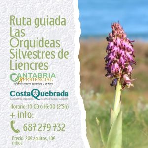 *Sábado 17: Ruta guiada “Las Orquídeas Silvestres de Liencres”: Cantabria experiencial organiza este recorrido en Liencres. Durante el paseo el guía nos irá descubriendo las diferentes especies de orquídeas silvestres y otras plantas interesantes que vayamos encontrando. En esta zona podemos encontrar más de 20 especies diferentes a lo largo del año, haciendo de este punto uno de los más diversos de Cantabria en cuanto a estas curiosas flores se refiere.