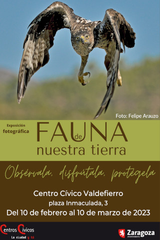 - Exposición fotográfica Fauna de nuestra Tierra (Zaragoza): Este fin de semana, podremos descubrir esta exposición de Felipe Arauzo Burillo en la cual nos dará a conocer la hermosa, escasa y amenazada fauna que todavía tenemos la suerte de tener tan cerca de Zaragoza.