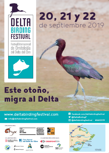 * Delta Birding Festival. Como cada año, en el Delta del Ebro, uno de los espacios naturales más importantes del Mediterráneo Occidental, el Delta Birding Festival ofrece un programa de actividades amplio y atractivo con conferencias, cursos, talleres, concursos, etc… acompañado de una gran feria de productos y servicios para los ornitólogos y para la gente que disfruta de la naturaleza en general. El 2019 será la sexta edición del único festival ornitológico que se celebra en Catalunya. Una de los características principales del Festival es destinar el beneficio económico de las entradas a proyectos relacionados con el estudio y la conservación de las aves y la naturaleza. El Delta Birding Festival se celebra en MónNatura Delta, un conjunto de instalaciones de la Fundación Catalunya – la Pedrera situadas en el hemidelta sur del Delta del Ebro, en un paisaje de arrozales y lagunas muy característico y de gran riqueza en una de las zonas húmedas más importantes de Europa occidental.