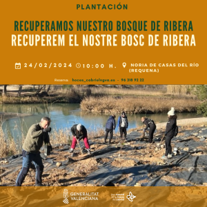 *Sábado 24: Recuperamos nuestro bosque de Ribera (Requena, Valencia): La actividad consistirá en la plantación de 100 plantas de ribera en la orilla del río Cabriel. Lo que se pretende con esta plantación es recuperar la vegetación propia de un bosque de ribera, donde anteriormente estaba invadido por la caña. Esta plantación está enmarcada dentro del proyecto de restauración del bosque de ribera en la población de Casas del Río (Requena).