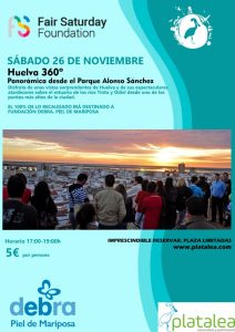 *Sábado 26 de noviembre: *Huelva 360º (Parque Alonso Sánchez de Huelva). Actividad para conocer la historia y patrimonio de Huelva desde las alturas. Actividad solidaria para disfrutar de las vistas y de los atardeceres desde lo alto del Parque Alonso Sánchez.