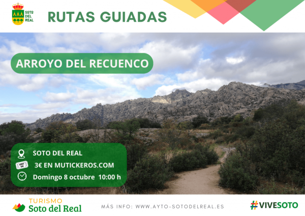 *Domingo 8: Ruta guiada al arroyo del recuenco (Soto del Real): Este domingo día 8 de octubre organizamos una salida hacia el arroyo del Recuenco en La Pedriza Anterior. Pasando por la icónica roca del Canto del Berrueco, en la que bordearemos la Dehesa Boyal municipal. Es tiempo de empezar a disfrutar de los colores del otoño en los fresnos, robles y arces que nos cruzaremos por el camino.