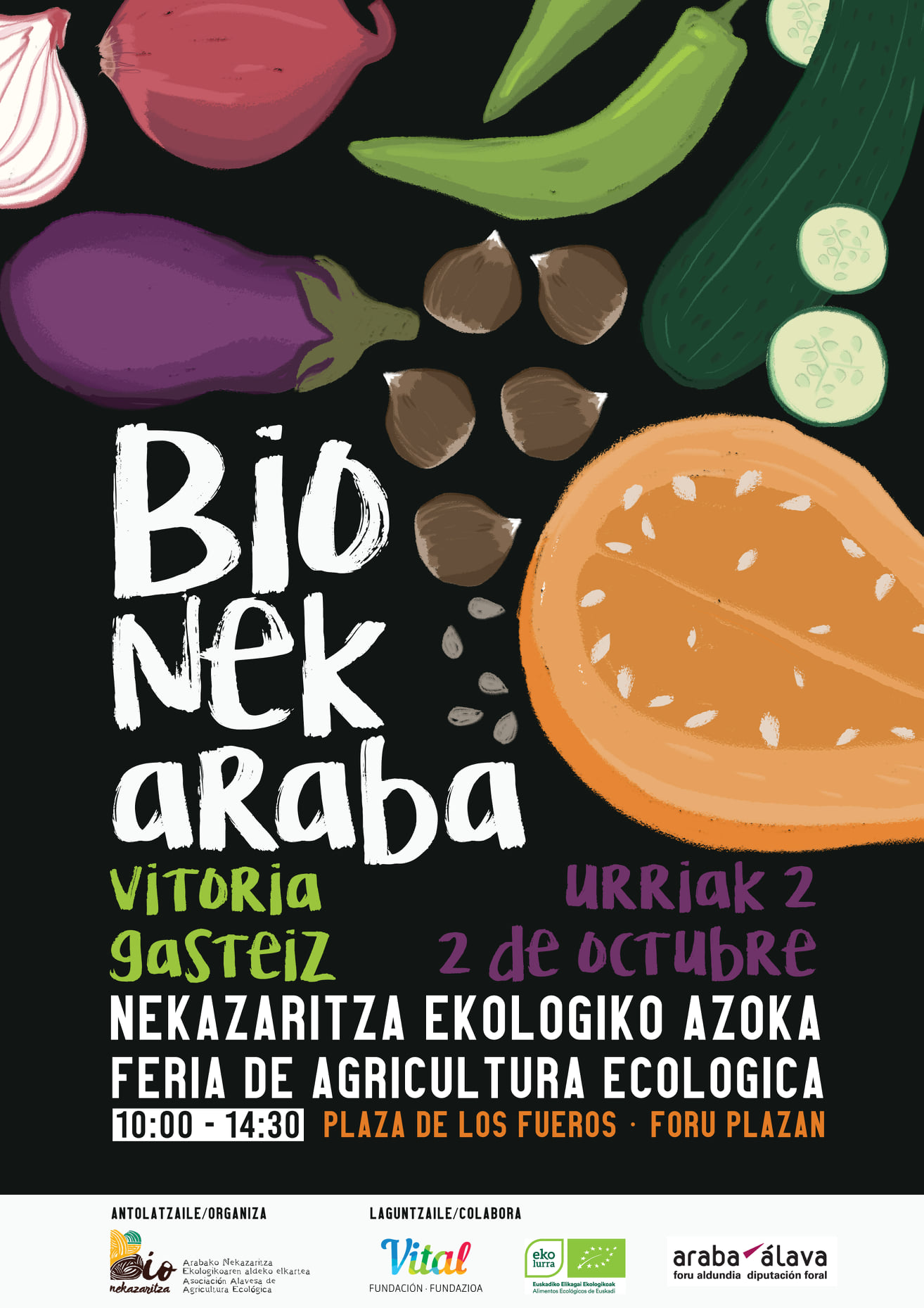 * Sábado 2: Bionekaraba 2021. Feria de Agricultura ecológica. Vitoria. Plaza de los Fueros de Vitoria-Gasteiz. Exposición y venta de alimentos y productos ecológicos del País Vasco y su entorno. Puestos de información para agricultores, ganaderos y consumidores. Organizada por la asociación Alavesa de Agricultura Ecológica.