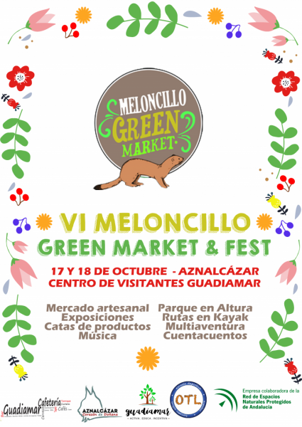 * Meloncillo Green Market. Sevilla. 17 y 18 de octubre. Mercado alternativo y actividades de ocio y ecoturismo como escalada, parque en altura o ruta guiada en kayak por el Guadiamar. Mercado artesano de productores locales. Más de 20 stands confirmado, actividades a cargo de los propios expositores, actividades, talleres y conciertos.