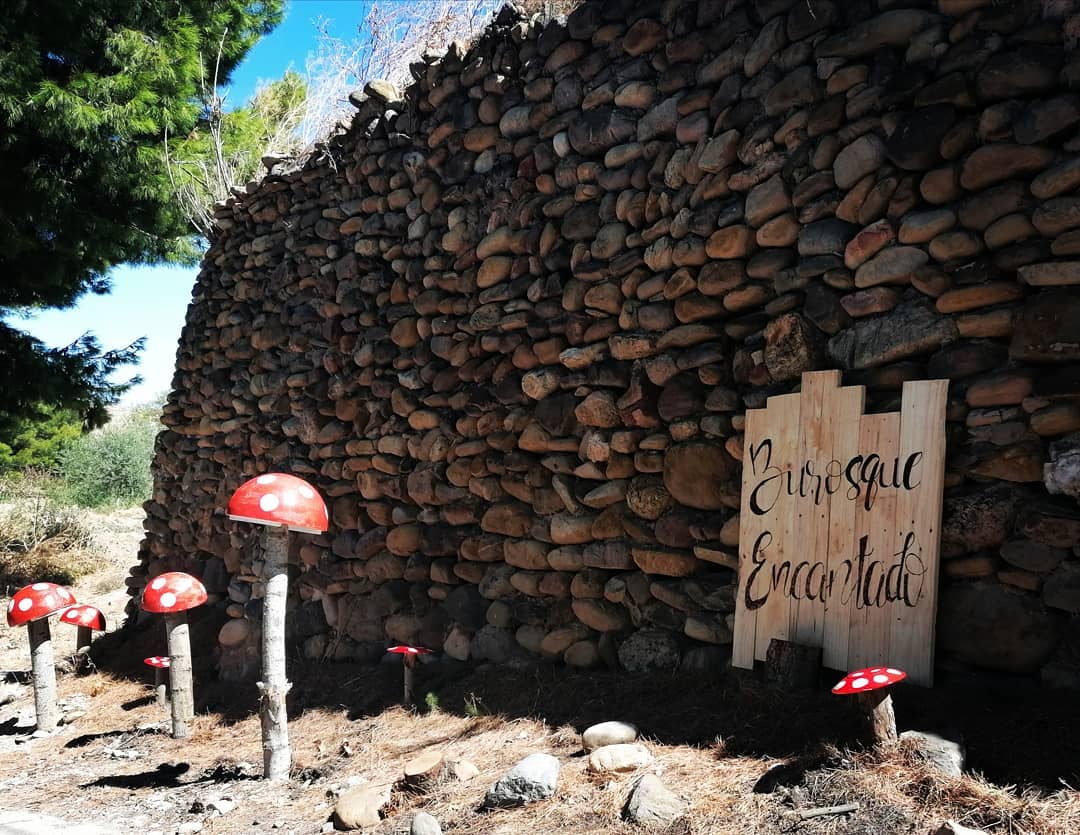 * El Burosque Encantado. Zaragoza. El bosque encantado está repleto de casitas en árboles, hechas todas con materiales naturales reciclados de la zona (palos, cortezas, maderas, nueces, almendras, setas, cascaras de pistachos, etc).