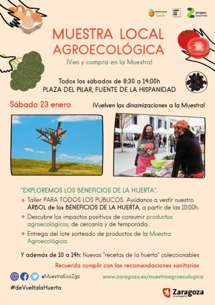* Sábado 23: Muestra agroecológica + Taller. Zaragoza. Huerta ecológica desde las 8:30 de la mañana y taller familiar. Desde las 10 h habrá también reparto de recetas de la huerta y bolsas reutilizables.