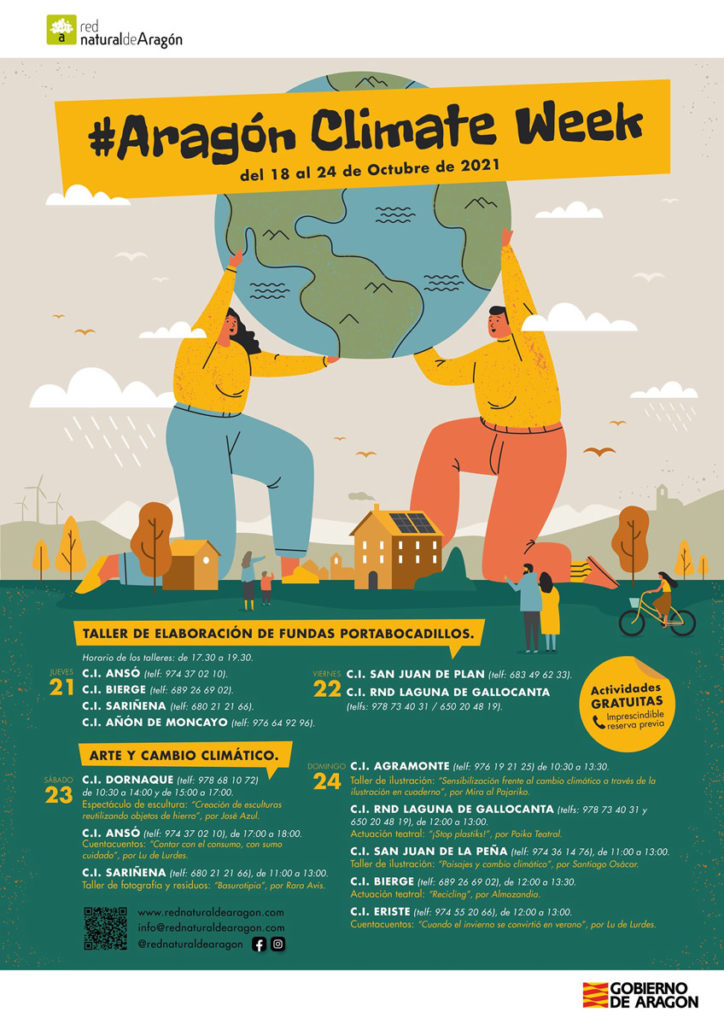 * #AragónClimateWeek en la Red Natural de Aragón. La primera edición de la ‘Aragón Climate Week’, organizada por la Dirección General de Cambio Climático y Educación Ambiental del Gobierno de Aragón del 18 al 24 de octubre, contará con más de una docena de actividades en los espacios naturales protegidos de la Comunidad. La Red Natural de Aragón se suma así a este evento que pondrá el foco del debate sobre la lucha contra el cambio climático.