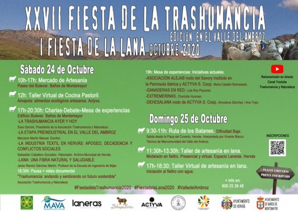 * Sábado 24 y domingo 25: XXVII Fiesta de la trashumancia. Extremadura y online. Talleres, rutas, debates, mesas redondas, etc.