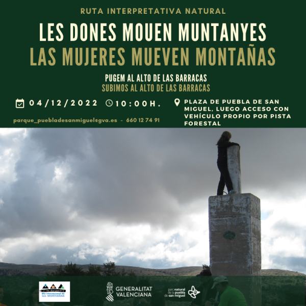 *Domingo 4 de diciembre: “Las mujeres mueven montañas. Subimos al Alto de las Barracas” (Valencia). Esta actividad tiene como fin celebrar el Día Internacional de las Montañas y homenajear el papel fundamental de las mujeres para la protección del medio ambiente y el desarrollo social y económico en las zonas montañosas. Asciende con nosotras hasta el Alto de las Barracas, cima de la Comunidad Valenciana.