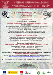 *XI Festival Internacional de Cine y Naturaleza “Valle de La Fuenfría” Parque Nacional de la Sierra de Guadarrama (Madrid): El sábado 3 a las 18:00, en la sala de cine del Teatro Montalvo de Cercedilla podremos ver todos los cortometrajes que han participado en este concurso y elegir nuestro favorito.