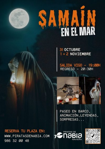 *Viernes 1 y Sábado 2: SAMAIN en el mar: Travesía nocturna por la Ría de Vigo que estará llena de misterios, leyendas y mucho miedo. Un entorno privilegiado ambientado en “Halloween” a bordo de uno de nuestros catamaranes.