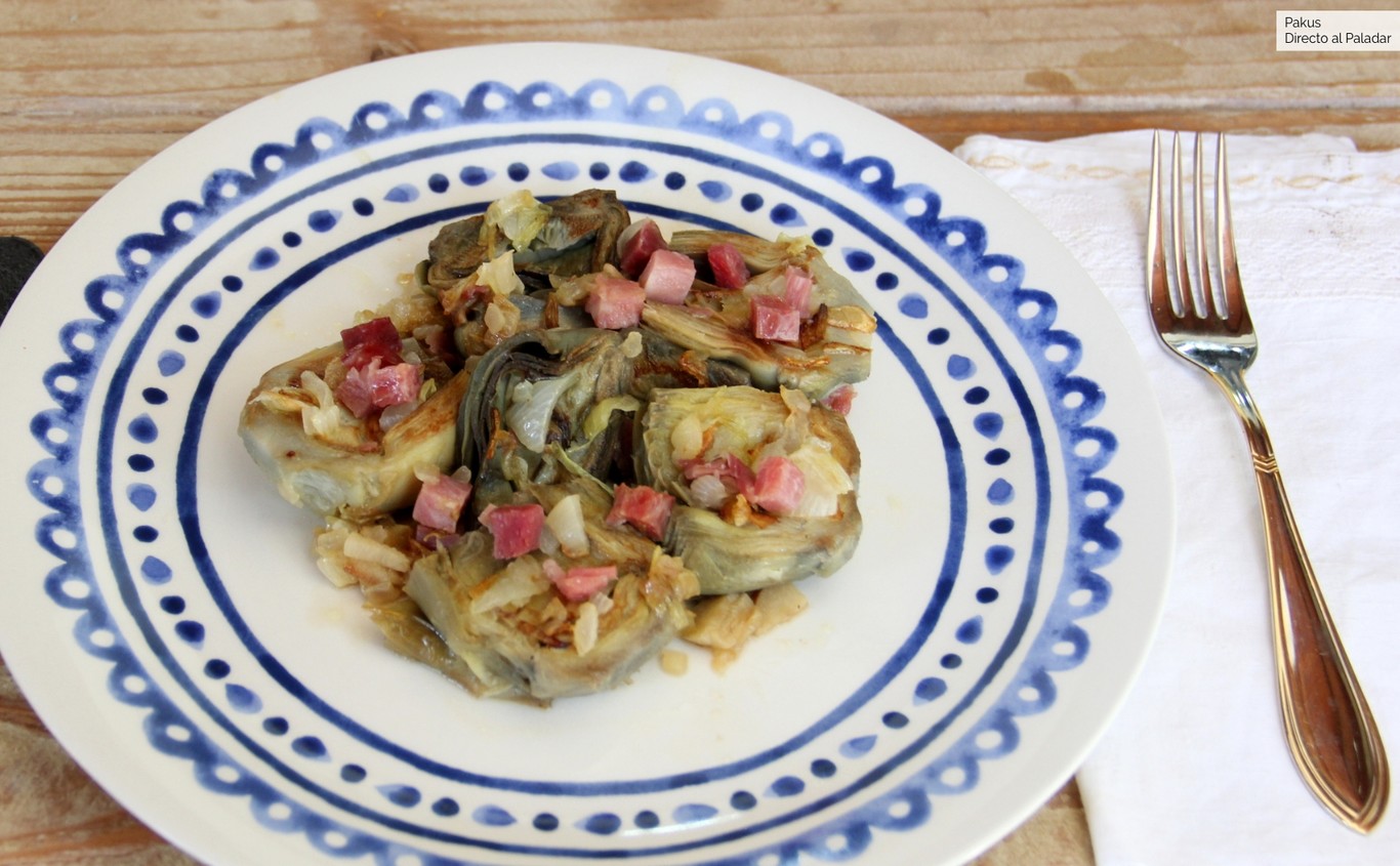 Uno de los platos más típicos que podemos elaborar con este producto de temporada son las alcachofas cocidas rehogadas con jamón. Como no queríamos dejar de incluir este clásico, rescatamos una reinvención de esta receta de Directo al Paladar. ¿El truco? pasar las alcachofas por la plancha y en la salsa.