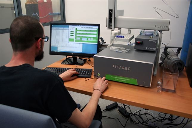 Este nuevo sistema con el que ya trabaja el equipo del Servicio de Radioisótopos, se utiliza para la medida de relaciones de isótopos de oxígeno e hidrógeno basado en espectroscopía de cavidad resonante por láser, diseñado específicamente para el análisis de muestras de agua y extractos vegetales. Esta técnica complementa a otras ya ofrecidas por el Servicio en el ámbito del estudio de los recursos hídricos y la oceanografía, tales como las relaciones entre isótopos radiactivos de hidrógeno, uranio, radón, polonio/torio, etc.