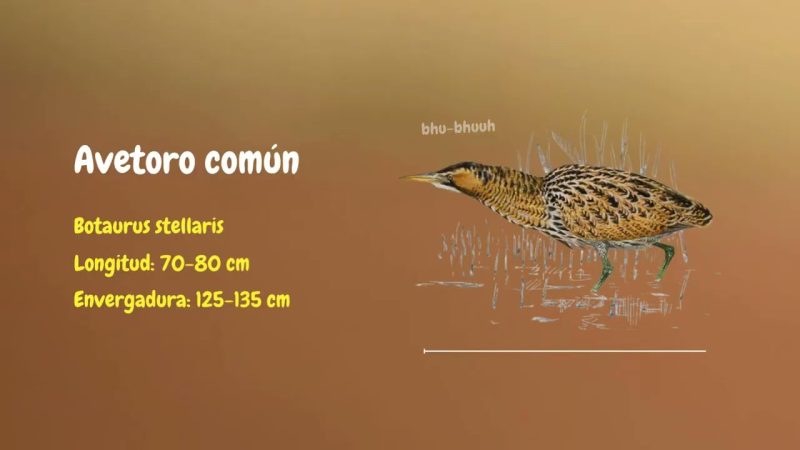 El avetoro común, considerado En Peligro Crítico en el Libro Rojo de las Aves de España, es un buen representante del estado de los humedales donde habita. Su escaso número y su mimético plumaje pardo que la camufla perfectamente en los carrizales donde nidifica, la convierten en una de las aves más difíciles de observar de la fauna ibérica. Más fácil resulta localizarla por su canto, un característico “mugido” que la delata durante las noches de primavera, en su periodo reproductor.