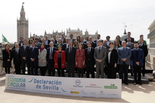 Un total de 60 ayuntamientos de toda España y de Europa han mostrado su apoyo a la Declaración de Sevilla. Este documento, presentado el miércoles en el Ayuntamiento de Sevilla por el alcalde de la ciudad y presidente de la Red Española de Ciudades por el Clima de la FEMP, Juan Espadas; y por Stefano Bonaccini, presidente del Consejo de Municipios y Regiones de Europa (CMRE), surge con el objetivo de impulsar políticas de economía circular en el seno de las ciudades.