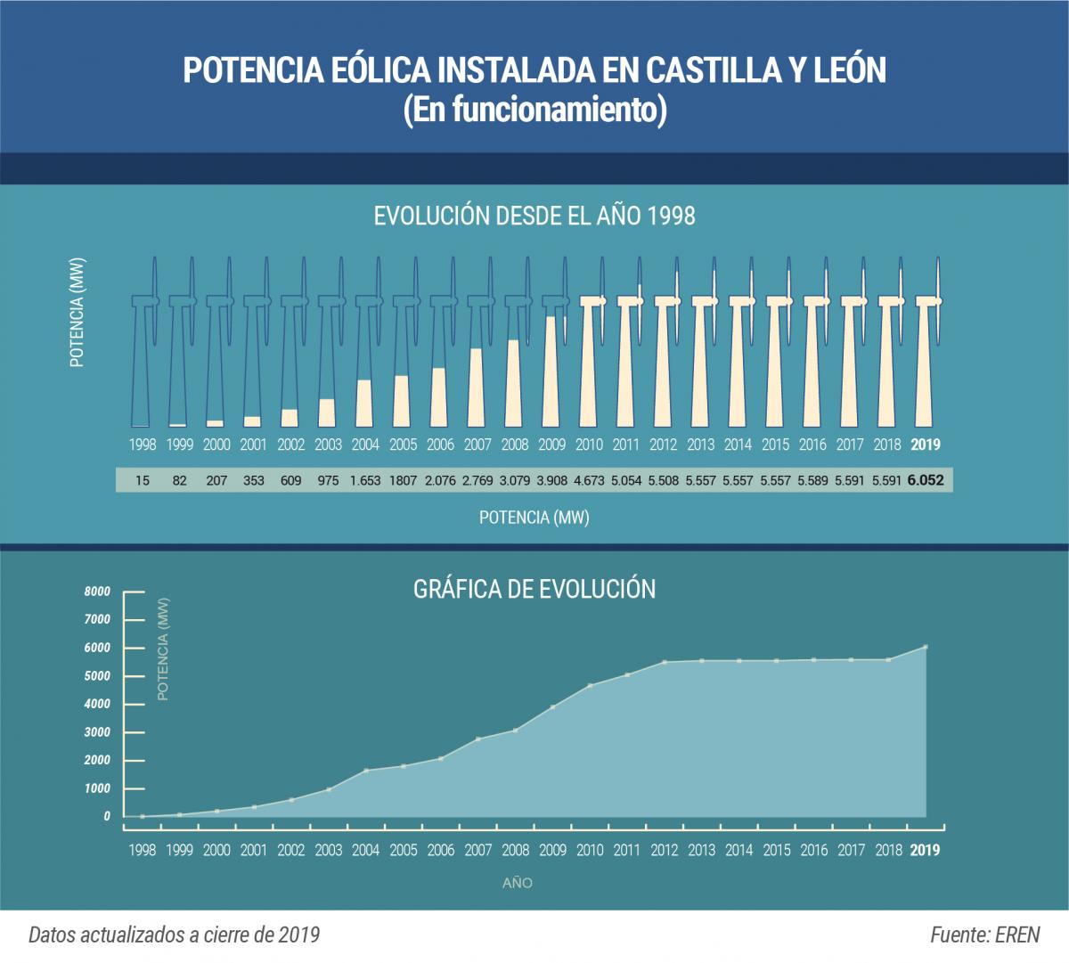 La comunidad cuenta con 238 parques en funcionamiento que aportan 6.052 megavatios eólicos al sistema eléctrico.