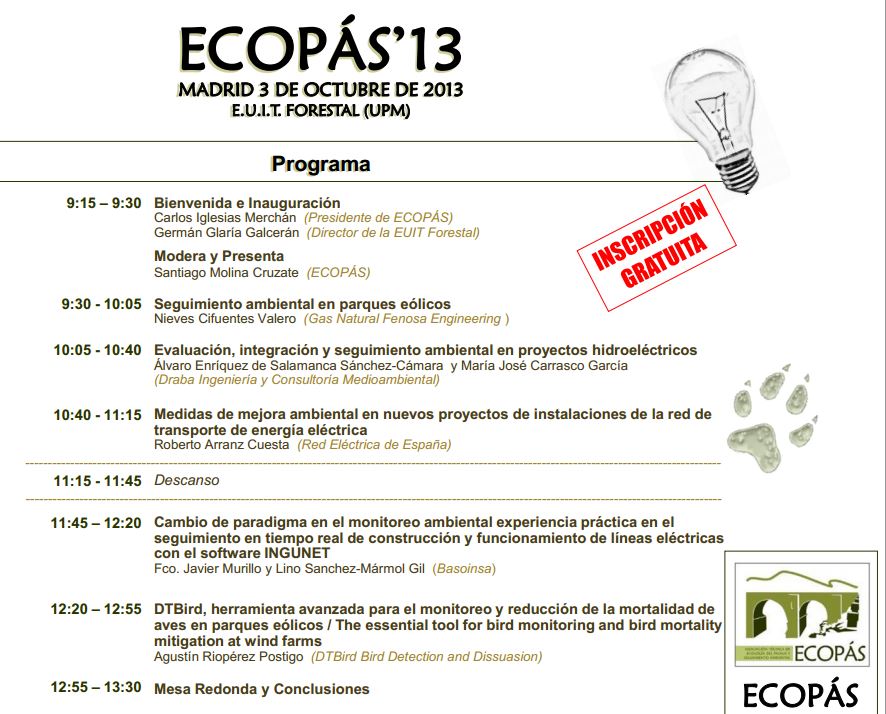 En esta ocasión ECOPÁS 13 abordará de forma monográfica los programas de Seguimiento y Vigilancia Ambiental en la ejecución de proyectos energéticos y contará para ello con intervenciones y ponencias de distintos profesionales del sector que abordarán metodologías y casos prácticos relacionados con el control de la variable ambiental de acuerdo al siguiente programa:
