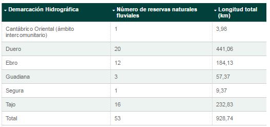 Estas 53 nuevas reservas se suman a las 82 declaradas previamente, en noviembre de 2015 en el ámbito de diez demarcaciones hidrográficas, con lo que ya son 135 las reservas naturales fluviales de España, con una longitud total de 2.684 kilómetros.