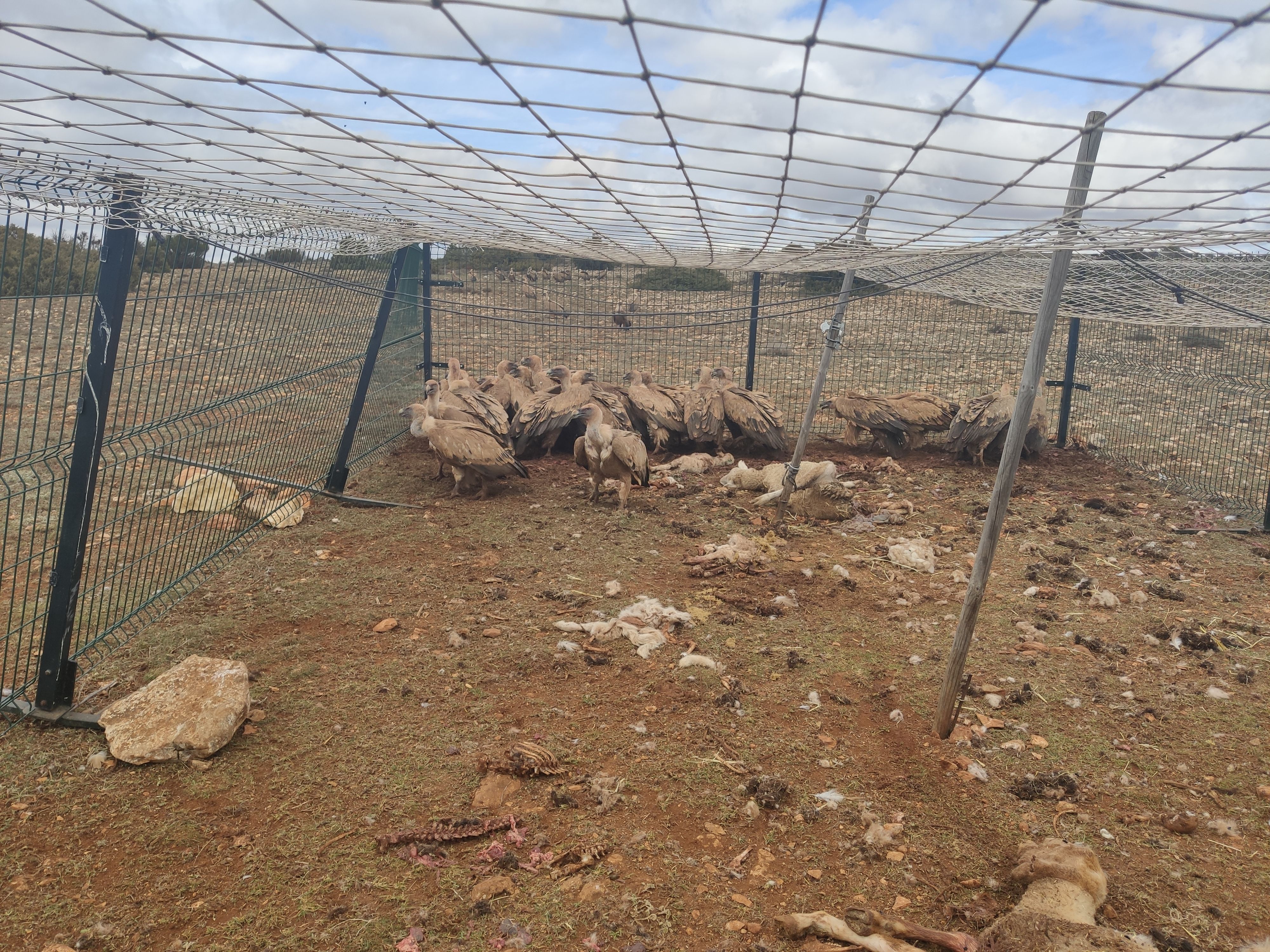 Ejemplo de este deber es una de las últimas acciones en las que nos hemos embarcado junto a otros muchos, piezas fundamentales también en el puzle de la conservación. Técnicos y agentes medioambientales de la Junta de Comunidades de Castilla la Mancha, Naturgy, Fundación Global Nature, consultores (Biodiversity Node, Màquia, SECIM, expertos en aves carroñeras), Ministerio para la Transición Ecológica y Reto Demográfico, GREFA, IREC, ganaderos, y varios voluntarios hemos participado de esta experiencia que parte de la necesidad de capturar de manera eficaz y segura a los individuos. En total, más de 25 personas. En la Comarca de Molina de Aragón (Guadalajara), donde reside una de las mayores poblaciones de buitre leonado la península ibérica, este grupo variopinto ha marcado 17 ejemplares de buitre leonado, de los cuales 8 de ellos han sido equipados con un emisor GPS para conocer sus movimientos de dispersión, área de campeo y dificultades en sus hábitos diarios.