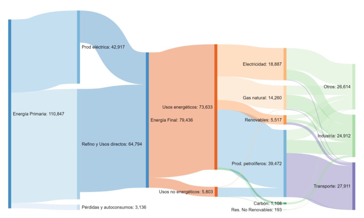 El consumo de energía primaria en España durante 2020 fue de 110.847 ktep, lo que supuso una reducción del 12,0% respecto a 2019. El consumo de energía final, por su parte, experimentó un descenso del 13,4% con respecto a 2019, hasta un total de 79.436 ktep.