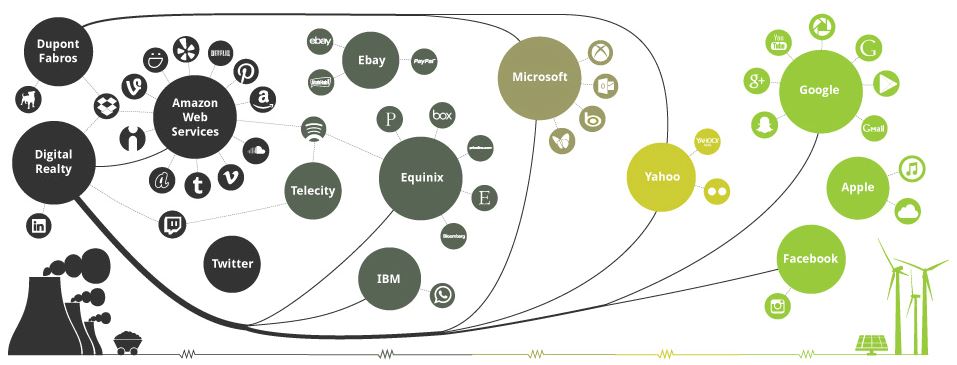 Las seis mayores compañías de Internet –Facebook, Apple, Google, Box, Rackespace y Salesforce.com– se han comprometido a que sus centros de datos se abastezcan en un cien por cien de energía renovable. Este compromiso sirve para presionar a los servicios públicos de cara a ofrecer energía solar, eólica y de otras fuentes renovables, ha comentado Greenpeace.