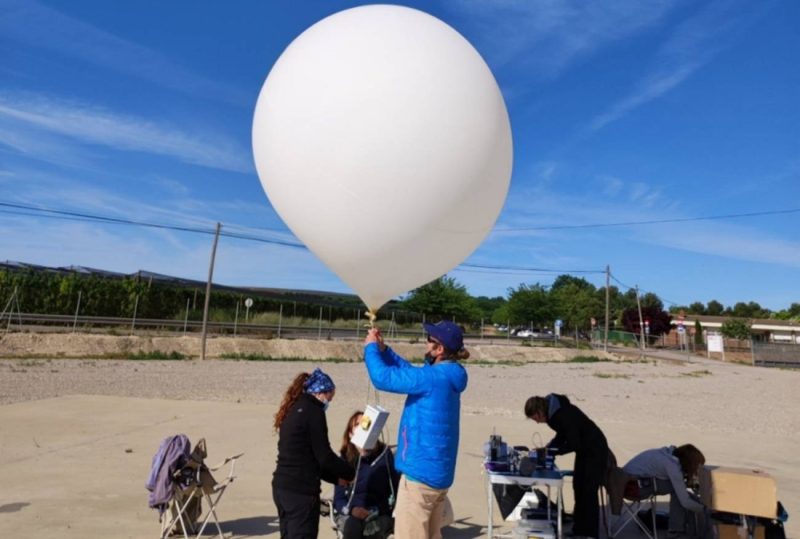 El equipo científico del IDAEA-CSIC prepara el globo aerostático para analizar aerosoles orgánicos. / Joan Grimalt