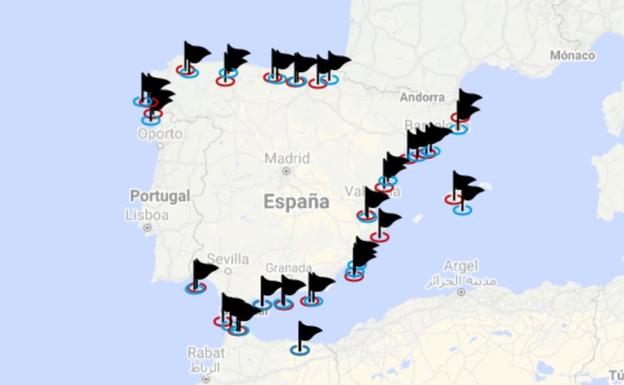 En concreto, las banderas negras se han otorgado con la siguiente distribución: 15 banderas negras por vertidos de aguas sin depurar; ocho por urbanismo; siete por actividades industriales contaminantes; seis por puertos y cruceros impactantes; tres por erosión costera y obras de defensa; tres por afecciones a la biodiversidad y especies invasoras; tres más por varios motivos; dos por acumulación de basuras y una bandera negra por los efectos de la acuicultura.