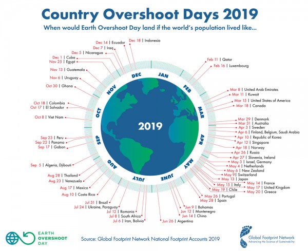 - El Planeta entra hoy en números rojos: El 19 de julio llegábamos al ‘Día de la Sobrecapacidad’. Esta fecha fija el momento en que la humanidad ha consumido todos los recursos naturales que la tierra es capaz de regenerar en un año.