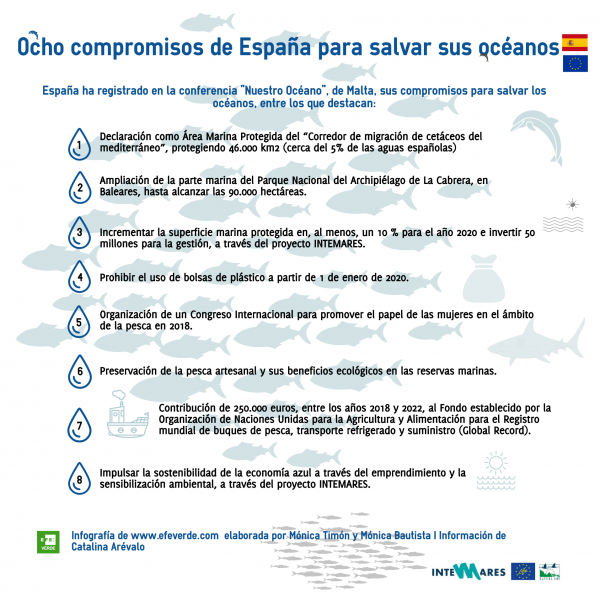 España ha registrado en la conferencia «Nuestro Océano», sus ocho compromisos para salvar los océanos, entre los que destaca la creación de una gran área marina protegida denominada «Corredor de Cetáceos Mediterráneo» o la ampliación del Parque Nacional de Cabrera.