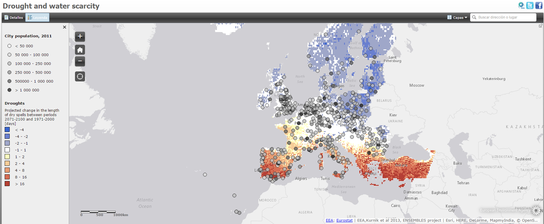 Estos mapas muestran una primera aproximación a la vulnerabilidad de las ciudades y pueden ser complementados con datos locales más detallados. La web de la Agencia Europea de Medio Ambiente, dispone asi mismo de una sección en la que guía a los usuarios/as a crear sus propios mapas añadiendo datos complementarios y aportando enlaces a otras fuentes de información.